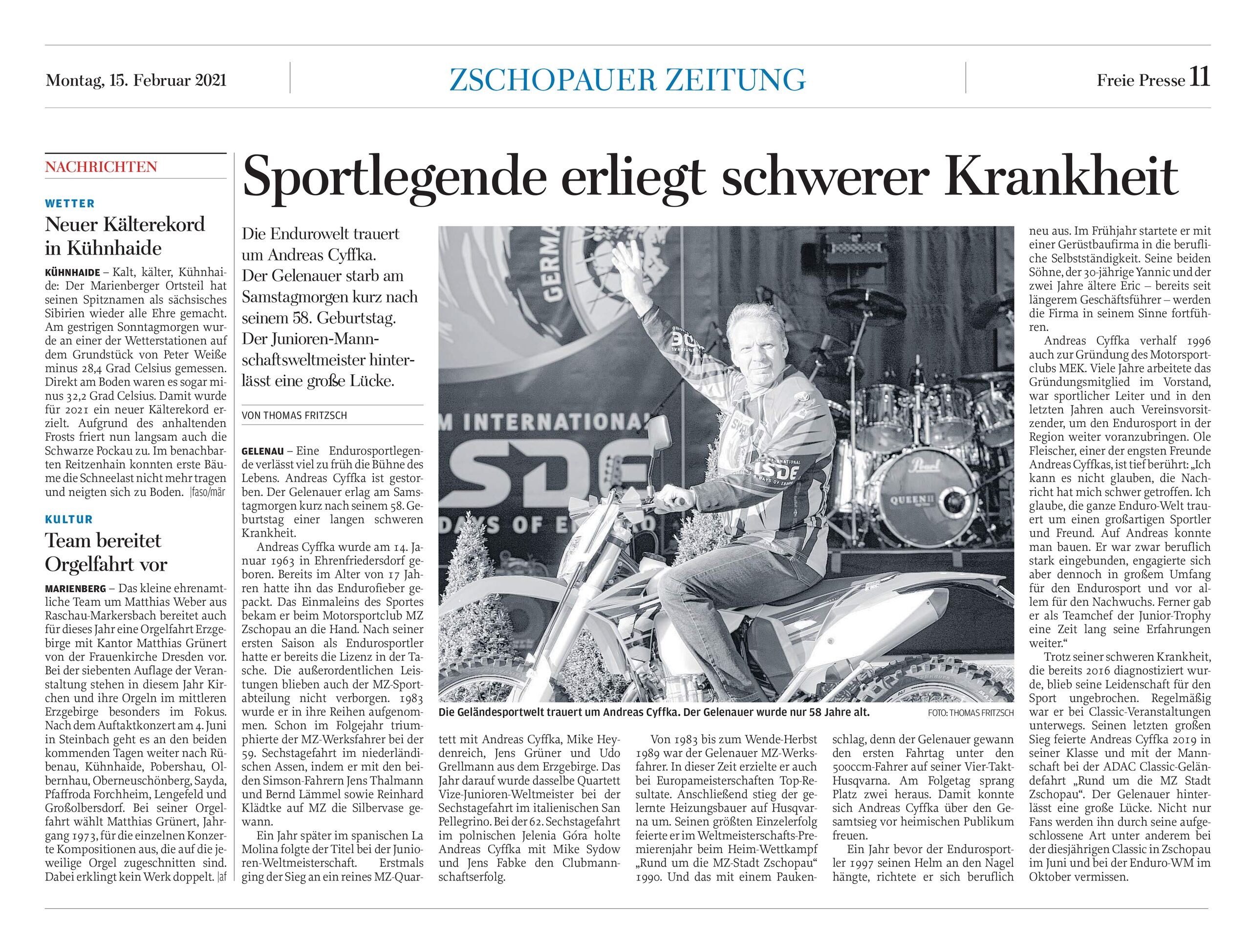Andreas Cyffka starb am 13. Februar 2021 nach schwerer Krankheit.